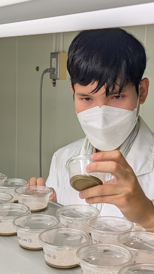 Fig. 2. Assistant Professor Poomraphie Nuntawong observes the effects of Manchurian walnut leaf extracts on seedling growth.
