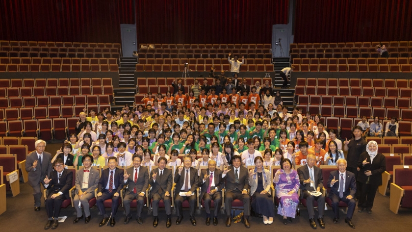 The panel discussion was co-hosted by the Japan Future Leaders School, a summer school supported by local governments and industry, including those in Fukuoka Prefecture, with around 150 high school students participating from across Japan. The selected team from the program gave presentations in English, followed by responses from the panelists, engaging in meaningful dialogue on building a future without conflict.