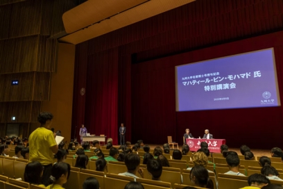 On August 6, 2025, Kyushu University hosted a special lecture by Dr. Mahathir bin Mohamad, former Prime Minister of Malaysia, at the Shiiki Concert Hall on the Ito Campus. The event was held in commemoration of the conferment of an honorary doctorate from Kyushu University upon Dr. Mahathir.