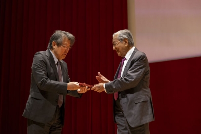 Following the lecture, Kyushu University formally conferred the honorary doctorate degree upon Dr. Mahathir. In the acceptance speech, Dr. Mahathir expressed appreciation for the university’s relationship with Malaysia, and his expectations for hydrogen research and other initiatives. As a token of friendship, he also donated books to the university.