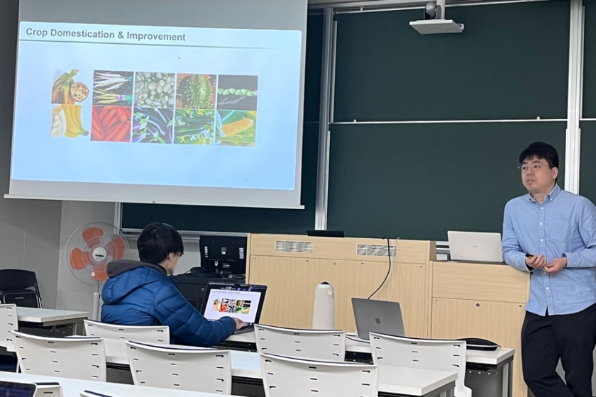 The speaker was Dr. Jungnam Cho from the Department of Biosciences at Durham University in the UK, whose research focuses on the coevolution of transposons and host plants within the context of plant RNA biology. The lecture title was "Arms race of transposons and host plants," presenting the reality of the ongoing, never-ending battle between the two, along with the latest research findings.