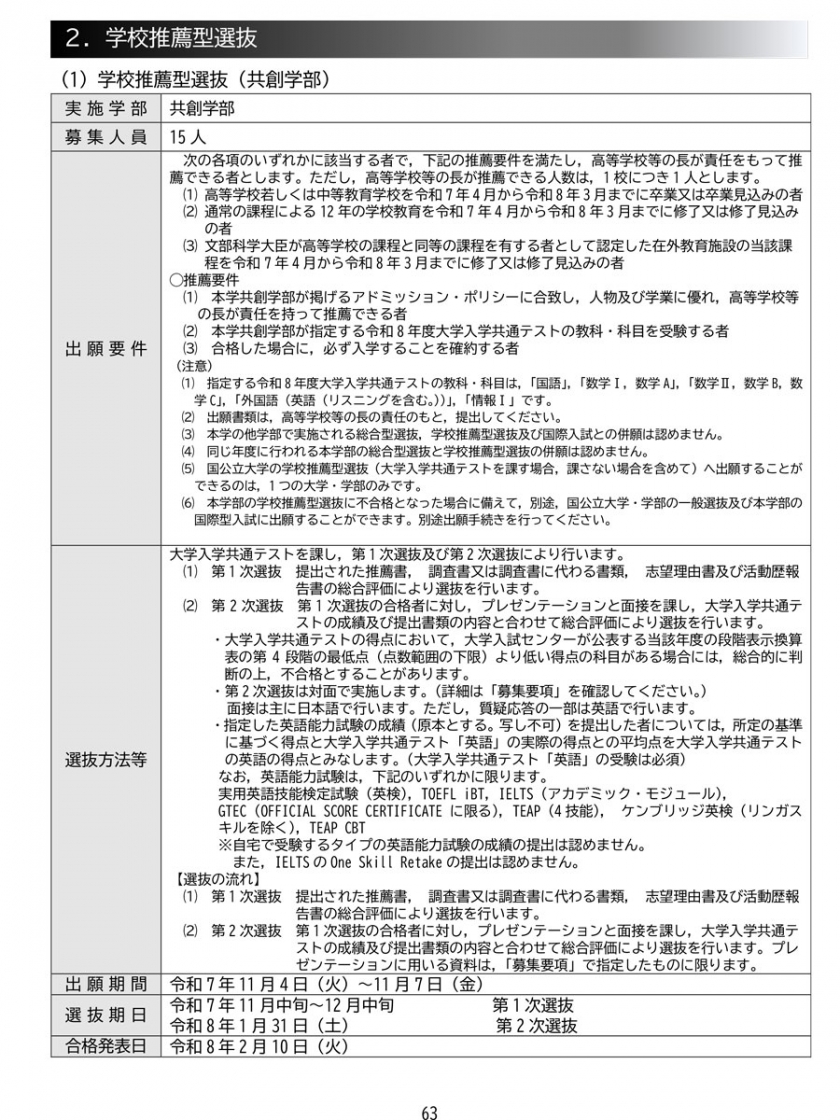 令和8(2026)年度 学校推薦型選抜 共創学部