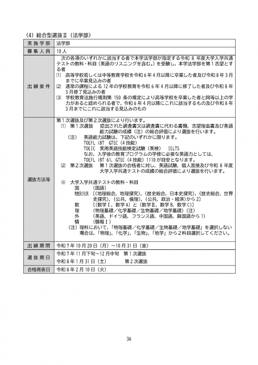 令和8(2026)年度 総合型選抜Ⅱ 法学部