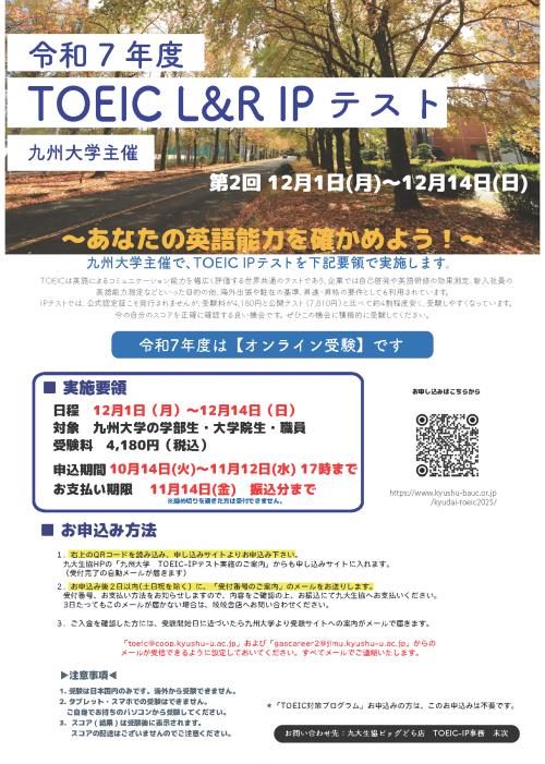 申込URL:https://www.kyushu-bauc.or.jp/kyudai-toeic2025/ |