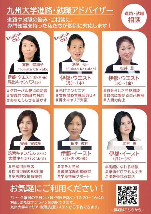 就職相談の予約は、九州大学キャリア・就職支援システムから受け付けています。