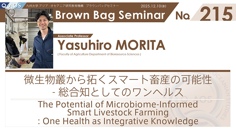 第215回アジア・オセアニア研究教育機構(Q-AOS)Brown Bag Seminar Series「微生物叢から拓くスマート畜産の可能性 - 総合知としてのワンヘルス」