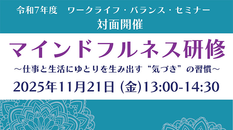 令和7年度 ワークライフ・バランス・セミナー 「マインドフルネス研修~仕事と生活にゆとりを生み出す”気づき”の習慣~」