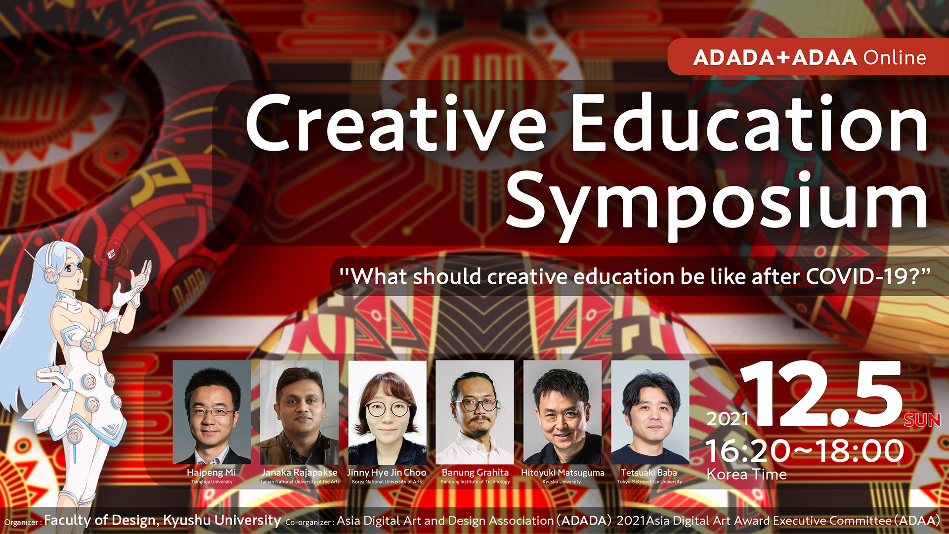 | イベント詳細 | 【開催方法】 オンライン会議ツール「Zoom」を使用してのウェビナー ※お申し込みいただいた方に、開催直前のご案内メールにて配信URLをお知らせします。届かない場合は「迷惑フォルダ」などに入っている場合もございますので、必ずご確認ください。 【プログラム】 ※使用言語は英語のみとなります。日本語字幕等もありませんのでご了承ください。 1)開会挨拶 尾本 章(九州大学大学院芸術工学研究院長) 2)各大学からの教育事例紹介(50分) 台湾:Janaka Rajapakse(Tainan National University of the Arts) 中国:Haipeng Mi(Tsinghua University, P.R. China) 韓国:Jinny Hye Jin Choo(Korea National University of Arts) インドネシア:Banung Grahita(Bandung Institute of Technology) 日本:松隈 浩之(九州大学大学院芸術工学研究院) 3)フリーディスカッション(30分) パネリスト: Janaka Rajapakse, Haipeng Mi, Jinny Hye Jin Choo, Banung Grahita, 松隈 浩之 ディスカッションモデレ―ター: 馬場 哲晃(東京都立大学) 4)閉会挨拶 近藤 邦雄(東京工科大学名誉教授/ADADA JAPAN会長) ※プログラム・登壇者は変更になる場合があります。 【主催】 九州大学大学院芸術工学研究院 【共催】 アジアデジタルアートアンドデザイン学会(ADADA) 2021アジアデジタルアート大賞展実行委員会(ADAA) |