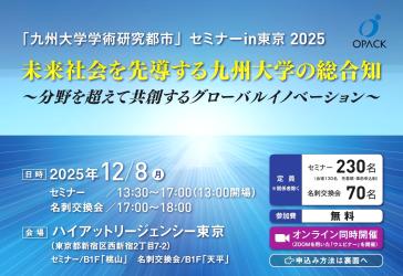 今年度は、「未来社会を先導する九州大学の総合知」をテーマに、最新の研究事例や社会課題解決への可能性についてご紹介いたします。