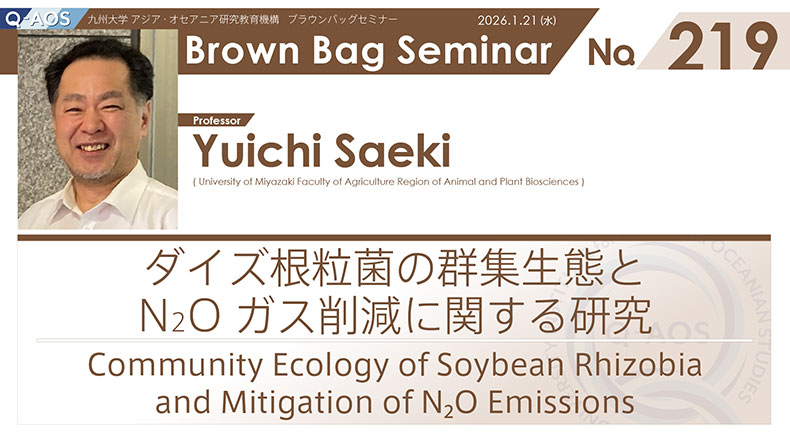 第219回アジア・オセアニア研究教育機構(Q-AOS)Brown Bag Seminar Series「ダイズ根粒菌の群集生態とN₂Oガス削減に関する研究」