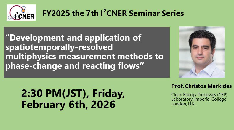 令和7年度第7回 I²CNER Seminar “Development and application of spatiotemporally-resolved multiphysics measurement methods to phase-change and reacting flows”