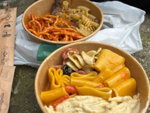 ランチは近くのパスタ店や精肉店のパニーニをよく食べていました。