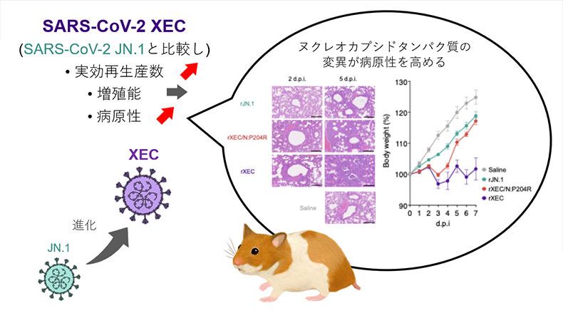 ヌクレオカプシドタンパク質の変異がオミクロンXEC変異株の病原性を高めることを解明