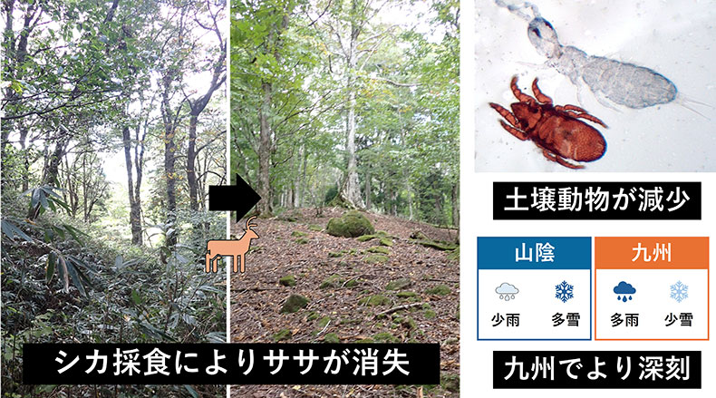 シカによるササ消失が土壌動物に与える影響は気候に左右される