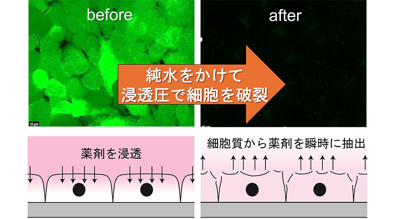 細胞を破裂させて低・中分子薬の「入りやすさ」と「出やすさ」を評価