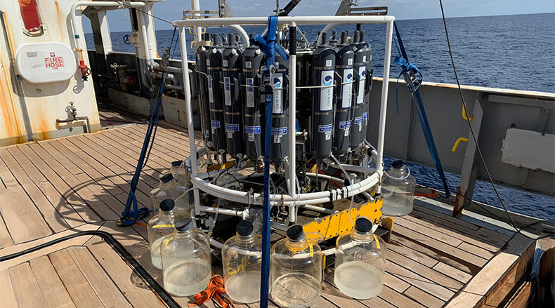 多層採水観測で海洋の中層に漂う微細マイクロプラスチックの検出に成功