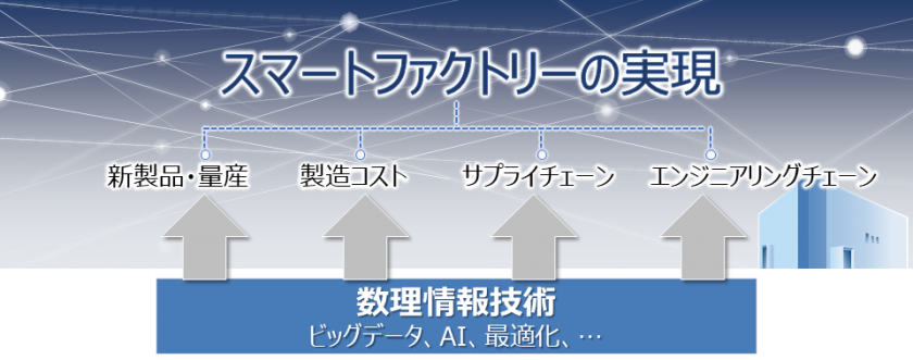 これらの課題に対応するため、本共同研究推進拠点では、短期および中長期の視点から、シーズの発掘や産業ニーズとのマッチングに豊富な経験を有するマス・フォア・インダストリ研究所のビッグデータ・AI・最適化などの数理情報技術を活用し、全学術分野を横断する学際的研究を推進します。この取り組みにより住友電装は事業・人材強化、大学活用のネットワーク構築、九州大学は学術的成果や専門的スキルの社会展開・実装、新規テーマ創出、若手高度数理人材のキャリアパス開拓がそれぞれ期待できます。