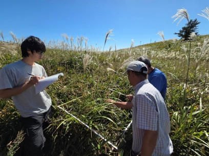 伊吹山(滋賀県米原市)の草原で実施した市民参加型調査のトライアル試験。多くの方が参加しやすく、かつ質の高いデータを収集するために、現場の意見も取り入れながら、調査手法の設計を進めています。