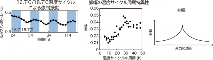 図3:体内時計の共鳴 ある特定の周期の温度サイクルで振幅が増加する。(Murayama et al. PNAS 2017から転載)