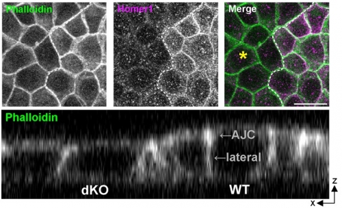 図 Homerを欠損した上皮細胞は、収縮力が弱まり、 平べったい形になる
