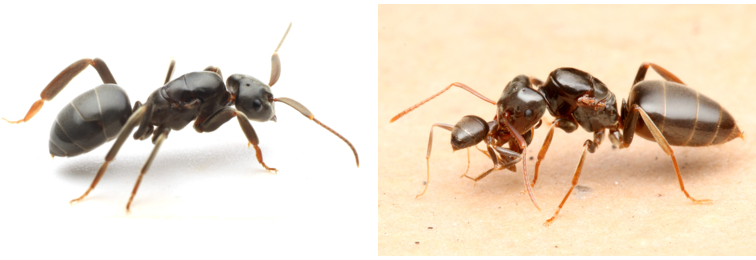 写真:テラニシクサアリ(左)とアメイロケアリ(右)の新女王(島田拓撮影)