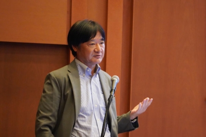 冒頭、両本部の本部長である石橋達朗総長による開会の挨拶があり、続いて、未来社会デザイン統括本部 木附誠一ディレクターによる、食に関する社会課題についての基調講演が行われました。