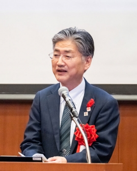 式典では、九州大学理事・副学長・副機構長 谷本潤による開会挨拶、総長・機構長 石橋達朗による挨拶に続き、文部科学省研究振興局大学研究基盤整備課 俵幸嗣課長、福岡県知事代理として福岡県商工部 見雪和之部長、株式会社QPS研究所 大西俊輔代表取締役社長 CEOから祝辞をいただきました。続くシンポジウムでは、国立研究開発法人宇宙航空研究開発機構(JAXA)宇宙科学研究所所長 藤本正樹氏による基調講演をはじめ、本機構に所属する九州大学の教員が、それぞれの専門分野における最新の研究成果等を以下のとおり紹介しました。