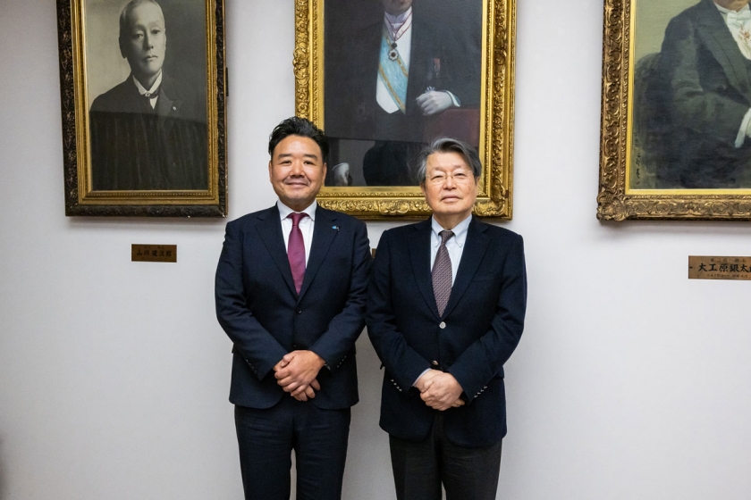 株式会社へいせい代表取締役 西原幹登様(左)本学総長 石橋達朗