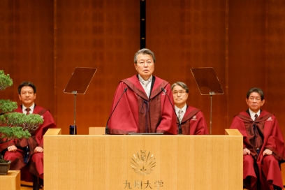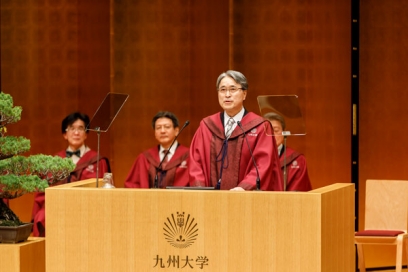令和8年4月3日、九州大学伊都キャンパスの椎木講堂で令和8年度入学式を挙行し、新たに12学部2,601名が九大生となりました。