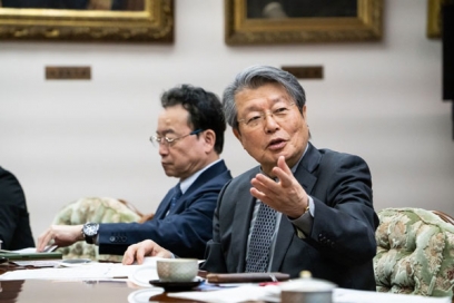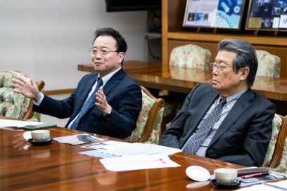 はじめに、石橋総長をはじめ、理事、副学長らが出席し、大学を取り巻く環境の変化や科学技術・イノベーション政策、本学の将来構想に関する意見交換を行いました。