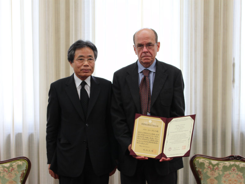 ※注)「九州大学栄誉教授」 この栄誉教授の称号は,ノーベル賞級の受賞歴があり,本学の教育・研究への貢献が見込まれる者に授与されます。