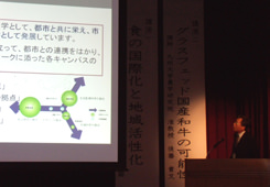 平成21年10月9日(金),九州大学北海道演習林が位置する北海道十勝平野の北部,足寄町において,「地域の生物資源を活かし環境を守る」をテーマに,本学農学研究院と足寄町の共催による講演会が開催されました。 本講演会は,九州大学農学研究院と足寄町との間で平成19年1月に締結された協力協定にもとづき開催されたもので,昨年に引き続き今回で2回目の開催となります。 足寄町の安久津勝彦町長及び本学の吉村淳農学研究院長による開会挨拶の後,有川節夫総長から九州大学の現状や主な教育研究活動について紹介が行われ,続いて下記2名による講演が行われました。100名近くの参加者は,具体的な事例を交えながらの講演に熱心に耳を傾け,講演の後には質疑応答が行われました。 講演1 「食の国際化と地域活性化」 甲斐 諭 九州大学名誉教授,中村学園大学流通科学部教授 講演2 「グラスフェッド国産和牛の可能性」 後藤 貴文 九州大学大学院農学研究院動物資源科学部門准教授 【写真】 (上)安久津勝彦町長による開会挨拶。 (中)有川節夫総長による九州大学の紹介。 (下)講演を行う後藤貴文准教授。