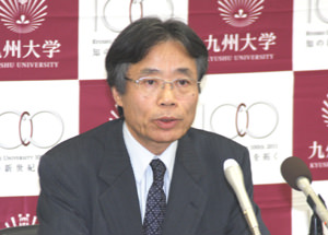 「本日、次期総長候補者に選出され、身が引き締まる思いだ。自分の持つ全ての力で、母校九州大学の発展のために尽くしたい。九州大学の総長は、責任の重い立場。他大学との競争の一方で九州全体のまとめ役も期待される。第一の課題は部局の活性化。部局のビジョンに基づく創意工夫のお手伝いだ。法人の長としてのリーダーシップを発揮しつつ、教員の自由な発想を生かしてボトムアップを図る。皆が元気になる九州大学づくりを目指したい。」