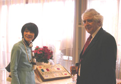九州大学からは日本側の共同ディレクターである伊藤早苗教授と矢木雅敏教授が来賓として出席しました。式典では、プロバンス大学学長のカベルーニ教授の開会の挨拶に続いて、ブレシニアックCNRS総裁、池田ITER機構長、材料科学研究科長テヴァンド教授が祝辞を述べ、その後、日本側の代表として核融合科学研究所理論・データ解析研究系主幹の大藪教授(本島所長の代理)、伊藤早苗教授がそれぞれ祝辞を述べました。最後にフランス側の共同ディレクターのベンカダ教授が現在までのLIA活動の報告及び閉会の辞を述べました。この式典はプロバンス地方紙の記事として掲載されました。またフランスチャンネル3のプロバンス地方局ニュースとしても放映されました。ニュースでは、伊藤教授、ベンカダ教授のインタビューとともにコラージュドクトラルでプロバンス大学に留学中の西村君(伊藤研・ベンカダ研)と九州大学へ留学予定のムラグリアさん(ベンカダ研・矢木研)の2名がLIAの交換留学生として紹介されています。 午後から祝賀パーティが開かれましたが、さすがフランス、国旗、校旗をかたどったケーキとシャンパンで乾杯しました。 【写真】 (上)開所式で祝辞を述べた(左から) ベンカダLIA共同ディレクター、カベルーニプロバンス大学学長、 伊藤LIA共同ディレクター、ブレシニアックCNRS総裁、池田ITER機構長、テヴァンド材料科学研究科長 (下)祝賀パーティにて(左から)伊藤教授、ジロープロバンス大学元副学長 |
