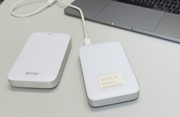 自宅と研究室のどちらも同じ環境で仕事できるようにハードディスクを常に持ち歩き。