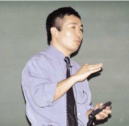 A lively exchange with NASDA Astronaut Koichi WakataSince graduating in 1989, NASDA astronaut, Koichi Wakata, one of the many now prospering alumni of Kyushu University's graduate program in Engineering, participated in flights of the space shuttle Discovery in 1996 and 2000, making a significant contribution to construction of the international space station. In April 2003, he entered the Department of Aeronautics and Astronautics to study for a Doctor Course designed for working professionals (tutor: Koji Isogai) of the Graduate School of Engineering.
