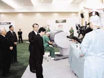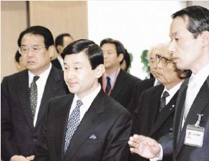 Crown Prince visits Kyushu UniversityDuring his visit to Fukuoka to attend a ceremony for the General Assembly of the Japan Medical Congress, Crown Prince Naruhito made a special visit to Kyushu University Hospital on April 5, the Saturday following the opening session of the Congress. Tisato Kajiyama, President of Kyushu University, Yasushi Mitarai, Deputy Minister of Education, Culture, Sports, Science and Technology, Hitoo Nakano, Vice President of Kyushu University, and Hajime Nawata, Director of University Hospital welcomed the Prince at the entrance of centennial Hall opened in March 2003 to commemorate the 100th anniversary of the Faculty of Medicine's establishment. Guided by the explanatory remarks of Professor Makoto Hashizume of the Faculty of Medical Sciences, the Prince was able to view a medical demonstration performed with cutting-edge surgical instruments and ask questions afterwards. At Davinci, he then proceeded to skillfully sew up an incision on a model using robotic technology, receiving a round of applause from Fukuoka Prefectural Governor Wataru Aso and other attendants.