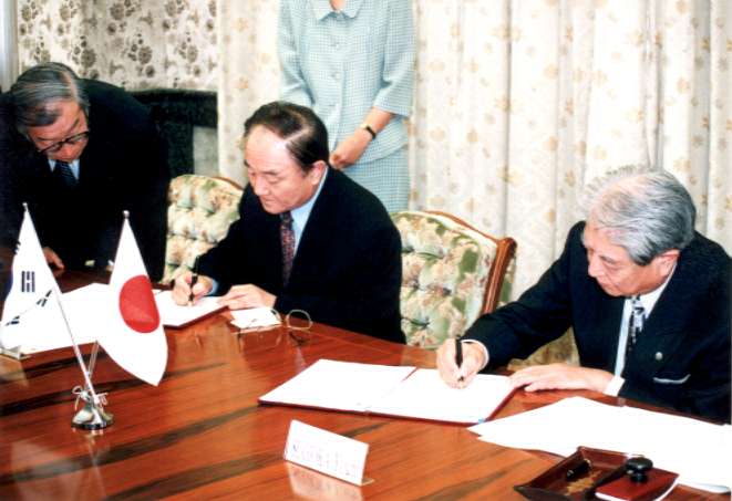 This agreement marks the opening of a new and important chapter in the on-going relationship between Kyushu University and the people of Korea. This process was given fresh impetus last year by the award of an honorary doctorate to the Prime Minister of Korea, Dr. Kim Jong-Pil. The success of Prime Minister Kim's visit to Fukuoka and his own personal involvement have contributed enormously. Everyone connected with both Kyushu University and the Korea Foundation sincerely believes that the various projects facilitated by this agreement can contribute to the formation of stronger ties between the two countries.