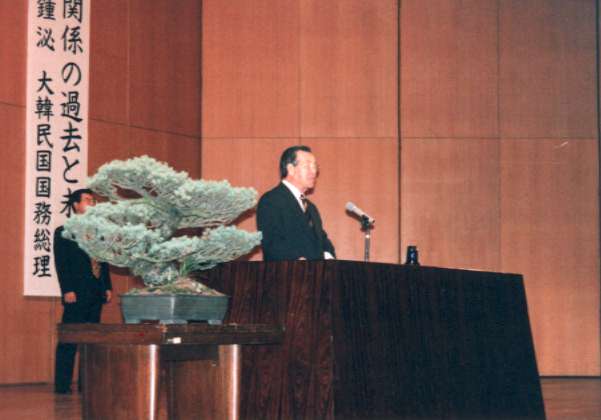 Korean Prime Minister Kim Jong-Pil gave lecture in Japanese at Kyudai, November1998.