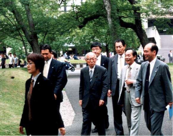 On the 9th of July, the Minister Arima of Education, Science, Sports and Culture visited Kyushu University. When he appeared in front of the 'Faculty Club' restaurant for lunch with President Sugioka, Vice-Presidents Yada and Shibata, and Director-General Watanabe, Kyudai students in the area were surprised to see him but gave him a warm welcome.