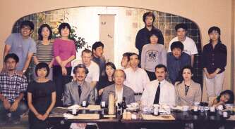 At the farewell party for Dr. Farshi. Dr. Farshi, his wife and daughter (front row on right), Dr. Kawai (front row, center), Dr. Sato (front row, left of center), Associate Professor Shinohara (second row, right of center) and the students in Dr. Kawaifs Laboratory. Besides the study, the life in Fukuoka is also interesting for me. First of all, it is very interesting that the people here (and probably in Japan) have a strong group spirit. This is called the "nice way" in Japan. Naturally, Japanese can work with a group/unit of one country better than the other country's people do.