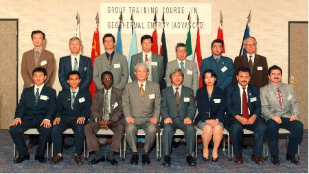 また,8月23日から実施されてきた「地熱エネルギー・アドバンスコース」(コースリー ダー:福田道博教授)の閉講式が,12月7日(火)創立50周年記念講堂大会議室で行われ, 杉岡総長及び国際協力事業団九州国際センターの野津センター次長から,9名の研修員それ ぞれに修了証書が授与されました。