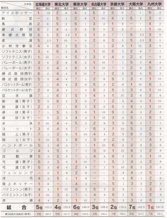 - 燃える夏 九大総合優勝!!「第37回国立七大学総合体育大会」