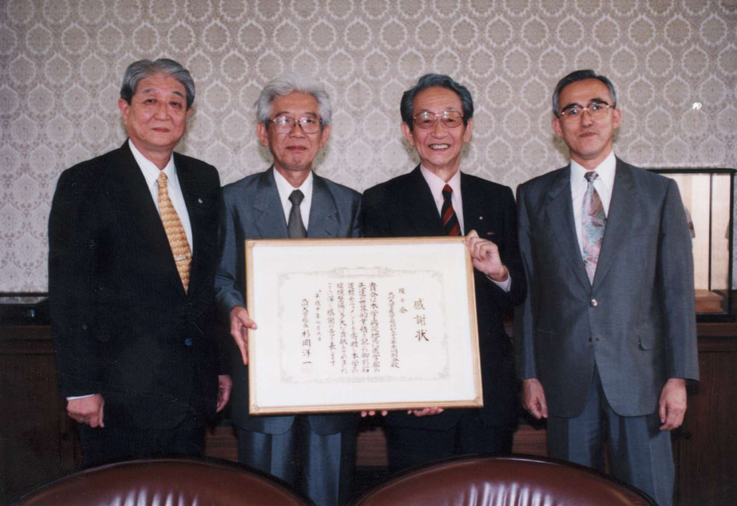 左から杉岡総長,西田幹事,村山前幹事(村山内科医院院長),杉町医学部長