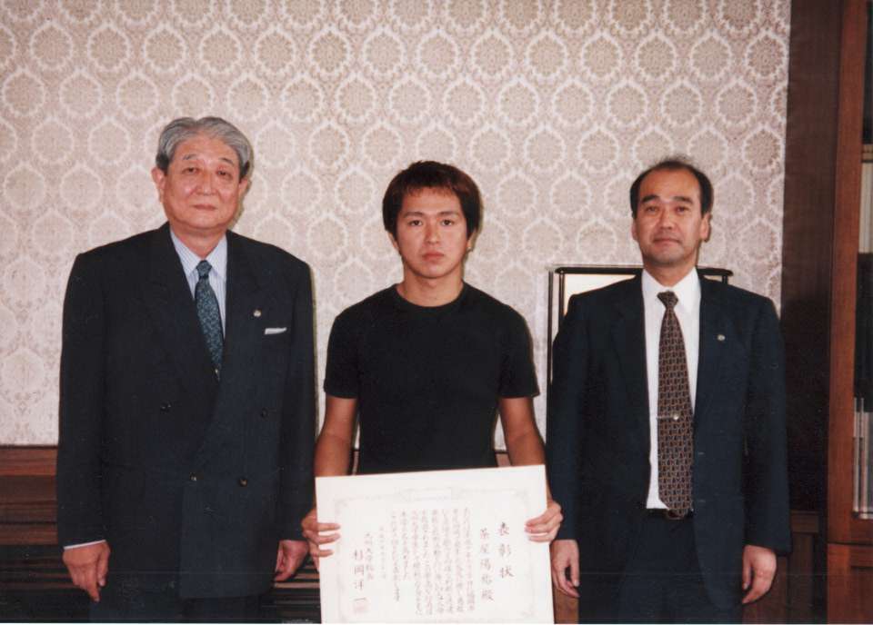 我が身の危険を省みず,4人の幼い子供を救った茶屋さんに,9月21日,杉岡総長から表彰状が授与され,先に制定された学生表彰規程による第1号の表彰となりました。