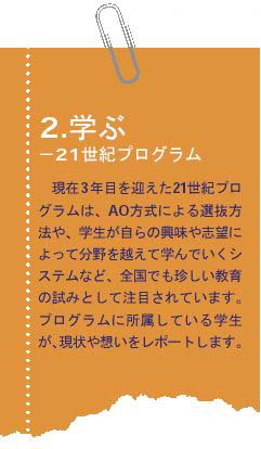 「21世紀プログラム」は二〇〇一年度から始まった、学部横断的な履修が可能な教育課程です。