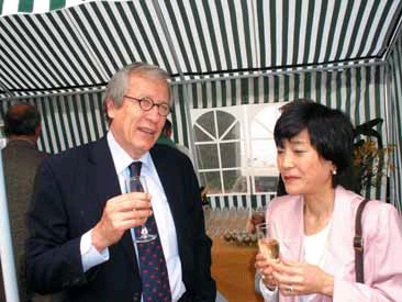 下左下/授与式及び記念公演後の授与を祝したガーデン・パーティにて。左は総長のトルドー教授 |