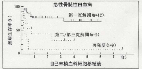 医学部第一内科及び関連施設における研究の特徴は,造血器腫瘍に対する自己末梢血幹細胞移植を用いた積極的な取り組みである。その結果,極めて良好な治療成績が得られ(図1),国内外でも興味深い研究グループとして注目されている。さらに,細胞療法への新たな展開を目指して研究が続けられている。