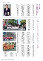 薬学研究院の井上和秀研究院長・主幹教授が平成25年度日本薬学会賞を受賞しました。 薬学会賞は日本薬学会の最高位の賞で、薬学の基礎及び応用に関し、同会を代表するに足る研究業績をあげ、世界の学術進歩に著しく貢献した研究者に授与されます。 このたびの受賞は、井上研究院長の「ATP受容体の生理機能、特に痛みに関する神経薬理学的研究」が高く評価されたものです。 授賞式は、平成25年3月27日(水)にパシフィコ横浜(横浜市西区)で行われました。 平成25年5月3日(祝・金)、本学の学生や留学生、教職員ら総勢約200名による「九州大学まなびたい」が、福岡市民の伝統的な祭りである「博多どんたく港まつり」のパレードに参加しました。 4度目の参加となる今回は、初めて学生による実行委員会が組織され、「Q〜世界と交わり明日を作る九大生〜」をテーマにパレードの企画・運営を行いました。どんたくに参加することで市民の皆様との交流を深めるだけでなく、学生の国際交流のきっかけとなることを目指し、4月にはパレードの事前練習を兼ねて、多数の留学生と日本人学生による交流会も開催しました。 どんたく当日は、菊川律子理事らの持つ横断幕を先頭に、応援団、チアリーダーがパレードを盛り上げ、その後方では松原寮生を中心とする学生及び卒「九州大学まなびたい」が博多どんたくパレードに参加井上和秀薬学研究院長が日本薬学会賞を受賞KYUDAI NEWS日本薬学会賞を受賞した井上薬学研究院長業生が平成21年に閉寮した田島寮伝統の「樽神輿」を担ぎ、勇壮な姿を披露しました。 続く学生、留学生及び今泉勝己理事・副学長、安浦寛人理事・副学長をはじめとする教職員の隊列は、色の異なる9色のTシャツで本学の構成員の多様性をイメージした「9(Q)色の虹」を描き、揃いのタオルを首にかけて、本学学生歌等に合わせて鳴子を手に踊りながら、福岡市中心部を約30分間パレードしました。天候にも恵まれ、沿道から盛んに拍手や声援が送られる中、パレードは大いに盛り上がりました。 また、翌4日(祝・土)には芸術工学部の学生らで構成する「九州大学大橋キャンパス芸工祭どんたく隊」がパレードに参加し、芸工祭をPRしました。9色のTシャツでパレードする本学学生ら「九州大学まなびたい」の横断幕を先頭にパレード「芸工祭どんたく隊」パレードの様子20 Kyushu University Campus Magazine_2013.5