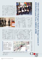 18 Kyushu University Campus Magazine_2013.7 本学大学院工学府水素エネルギーシステム専攻の修士課程学生が、Hydrogen Education Foundationが主催し、米国エネルギー省などが支援する“Hydrogen Student Design Contest”で、Grand Prize(最優秀賞)を受賞しました。2013年6月25日に米国ワシントンDCで開催されたACT EXPO 2013(Alternative Clean Transportation:代替燃料と先端輸Cl seup「2012-2013 Hydrogen Student Design Contest」で本学学生がGrand Prize(最優秀賞)を受賞送技術に関する北米最大のコンベンション)の中で行われた授賞式には、応募チームメンバーの9名が出席し、賞状とトロフィーを授与されました。 本コンテストは、来る水素経済社会に先駆けて若手研究者の育成を目指して開催されており、社会実証可能な学術的質の高いコンテストとして知られています。 本学では、同専攻修士課程の学生を対象にした講義「技術マネジメント」の一環として、2010-2011年の回より同コンテストに参加しています。(前々回は6位、前回は8位入賞) この講義は、同専攻だけでなく大学院経済学府産業マネジメント専攻[ビジネス・スクール(QBS)]と連携し、水素エネルギーや関連技術の社会普及やビジネス化に関する幅広い知識やスキルの修得を目的として2010年から開講しており、昨年11月、高田仁経済学研究院産業マネジメント部門准教授のもと、受講者を中心とした12名のチームを結成し、約半年かけて提案書を作成、今年5月に応募しました。 “Development of a Hydrogen Production and Fueling Infrastructure in the Northeastern United States”というタイトルで応募した提案には、投資コストを抑えるため普及初期に可搬式水素ステーションを採用、FCV普及時期ごとに想定したメインユーザー層にマッチするよう水素供給網を構築、などのアイデアが盛り込まれ、その独自性、実現可能性が高く評価され、Grand Prize(最優秀賞)を受賞しました。津田 和人(M2) 豊福 泰大(M1)安谷屋 佳祐(M1) 小林 直也(M1)進藤 孝介(M1) 高木 貴大(M1)高田 将(M1) 永松 洋平(M1)Liana Christiani(M1)馬場 信吾(修了生・参加時M2)三好 航太(修了生・参加時M2)平田 恭平(修了生・参加時M2)本コンテスト応募チームメンバー※本活動の一部は、文部科学省プロジェクト経費「産学官地域連携による水素社会実証研究」の支援で行われました。 関係各位に感謝します。授賞式会場でのメンバー集合写真応募チームが提案した2025年New Yorkにおける水素ステーション配置授賞式でのトロフィー授与の様子クローズアップ